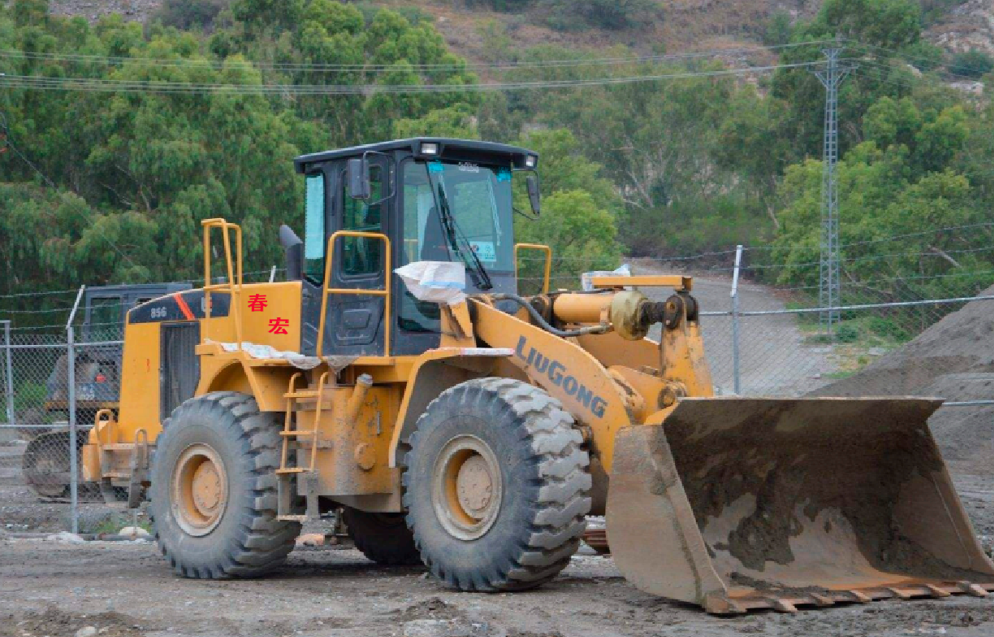 前后驱动桥带限滑差速器,后桥可摆动±15°,在崎岖不平的地面上,保证机器的四个驱动轮同时附着在地面上,提供最 大的牵引力;铰接式前后车架对中布置,可相对转向38°,转弯半径小,通过性好。这些设计特点使得机器在恶劣的工作环境下,也能保持正常的高效率的工作。