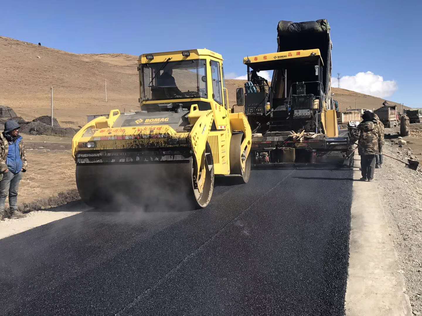春宏公司拥有雄厚的技术力量和机械设备,我公司拥有技术先进的摊铺机、胶轮压路机、双钢轮压路机、洒布车、碎石同步封层车等大型施工设备,是一支机械施工的专业化公司。多年来,我们以先进的设备、优质的工程施工完成了多个重点工程。